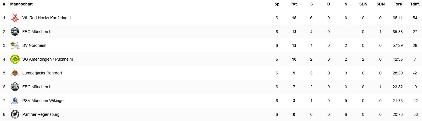 Den Red Hocks ihrerseits steht das nächste Duell mit einem Verfolger bevor; am Sonntag treffen sie um 11 Uhr in Regensburg auf den FBC München 3. „Gegen Nordheim sind wir hinten sicher gestanden und haben vorne unsere Chancen genutzt“, ist Angreifer Lukas Trieb zufrieden.