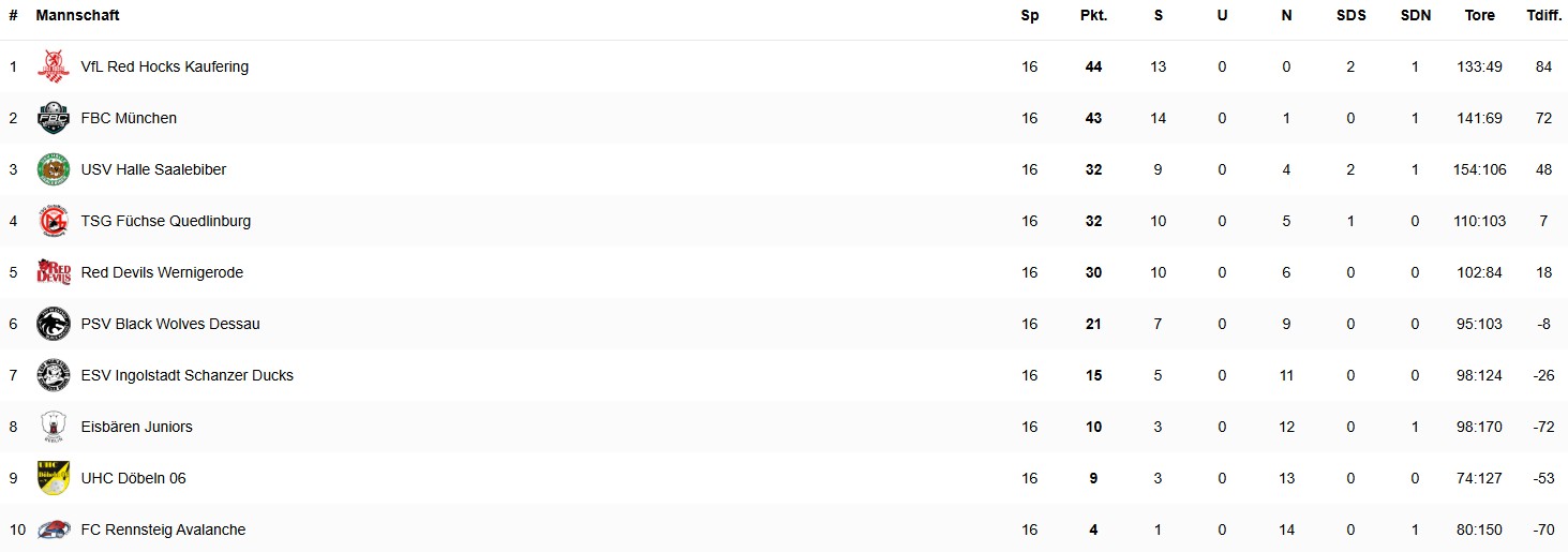Bayern – Die Playoffs sind eingetütet, durch einen 5:3-Sieg über Wernigerode und ein 9:7-gegen Halle machen die Red Hocks Kaufering und der FBC München den Einzug klar. Tags darauf unterliegen die Schanzer Ducks des ESV Ingolstadt in Quedlinburg bei einem irren Schlagabtausch mit 15:10.