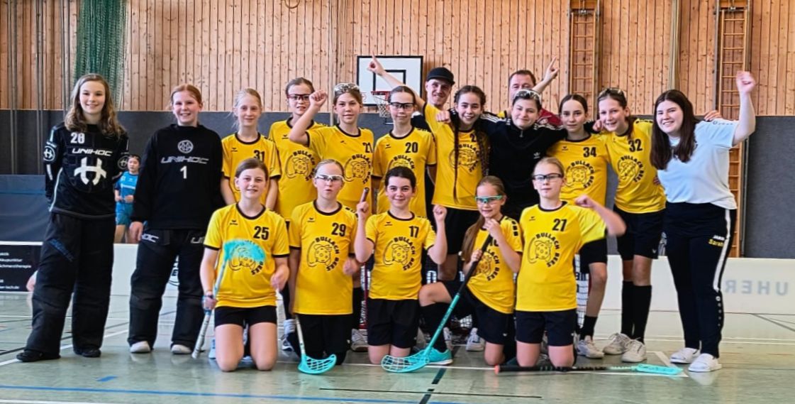 Bayern/Olching – Es war ein Tag voller Spannung, Emotionen und großer sportlicher Momente: Das allererste süddeutsche Mädchen-Qualifikationsturnier in der vollbesetzten Turnhalle an der Heckenstraße in Olching wird noch lange in Erinnerung bleiben. Bei den U13-Juniorinnen holte sich die SG Kaufering/Amendingen/Geiselbullach mit einem 11:3 und einem 7:1 gegen den FBC München das Ticket zur Deutschen Meisterschaft. Diese findet am 20./21. Juni in Jena statt. Deutlich spannender verlief die Entscheidung bei der U15. Nach einem 9:6-Auftaktsieg der SG Bullach/FBC München schmolz ihr Vorsprung im zweiten Duell immer mehr; mit 2:4 fiel die Niederlage gerade noch knapp genug aus, um dank des besseren Torverhältnisses das Startrecht bei der Deutschen Meisterschaft am 16./17. Mai in Berlin zu sichern.